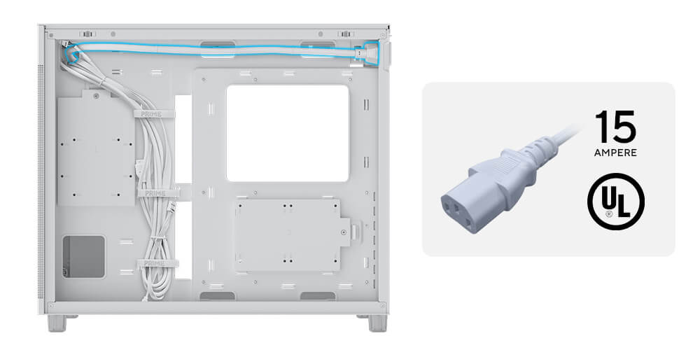 Внутренний кабель питания с сертификатом UL обеспечивает силу тока 15 ампер для стабильной работы мощных систем с блоком питания на 1200 Вт.