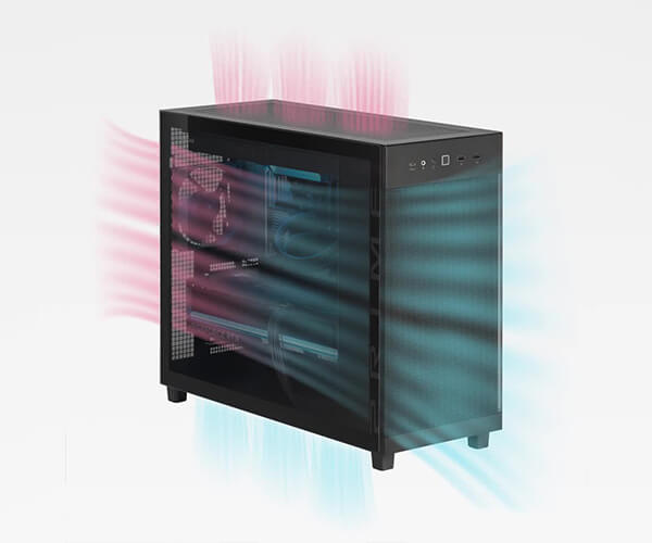 Металлические сетчатые панели разработаны для улучшения воздушного потока и минимизации попадания пыли — сочетание производительности и защиты в стильном исполнении.