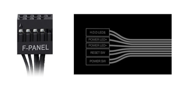 Продуманный дизайн разъёма упрощает подключение компонентов передней панели ввода/вывода (FIO) к материнской плате.