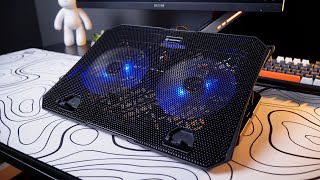 GamePro CP350 — охлаждающая подставка с двумя вентиляторами 125 мм (до 1000 об/мин) для надежного теплоотвода. Имеет 5 уровней высоты, 2 USB-порта и съемный держатель для смартфона. Выполнена из прочной металлической сетки и ABS-пластика – удобно, эффективно, долговечно.