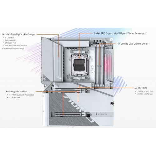Игровые материнские платы серии STEALTH повышают производительность памяти DDR5 и обеспечивают высочайшую совместимость с помощью различных передовых методов.