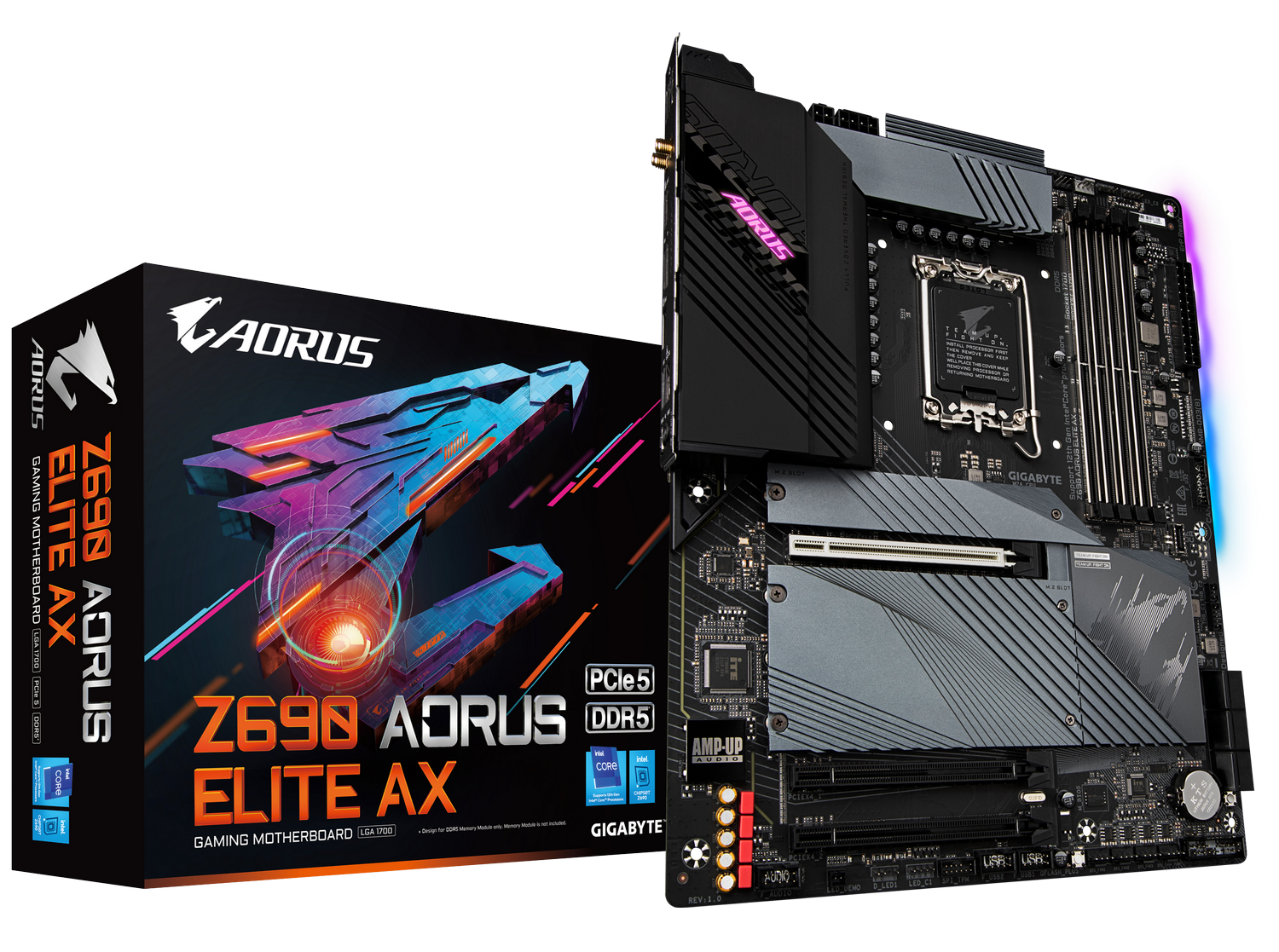 Gigabyte Z690 AORUS ELITE AX (s1700, Intel Z690) - материнская плата с подсветкой RGB, предлагающая передовые возможности для сборки игровой системы на базе процессора Intel 12-го поколения.