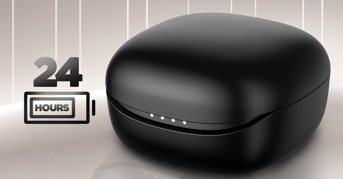 Ваши Hyperpunk Truedots HD на готовке круглосуточно! Заряда наушников хватает на четыре часа непрерывной работы, а в сочетании с кейсом их автономность обеспечена на 24 часа! Кроме того, компактный кейс с весом 39г позволит всегда держать наушники при себе.