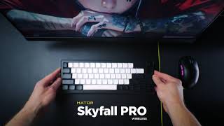 Открой новый уровень производительности с Skyfall Pro Wireless – игровой клавиатурой премиального класса, сочетающей элегантный дизайн, расширенную функциональность и очень тихие механические переключатели HATOR® Aurum Vanila Silent. Благодаря широкому спектру типов подключения, увеличенной емкости аккумулятора и тщательно проработанной конструкции Skyfall Pro Wireless обеспечивает универсальность сценариев использования и максимальный комфорт в повседневном использовании.