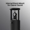 Всё необходимое уже встроено — поролоновый поп-фильтр, регулируемая подставка и резьба для крепления на микрофонный штатив. Никаких лишних деталей — только чистый звук и умный дизайн для простой установки.