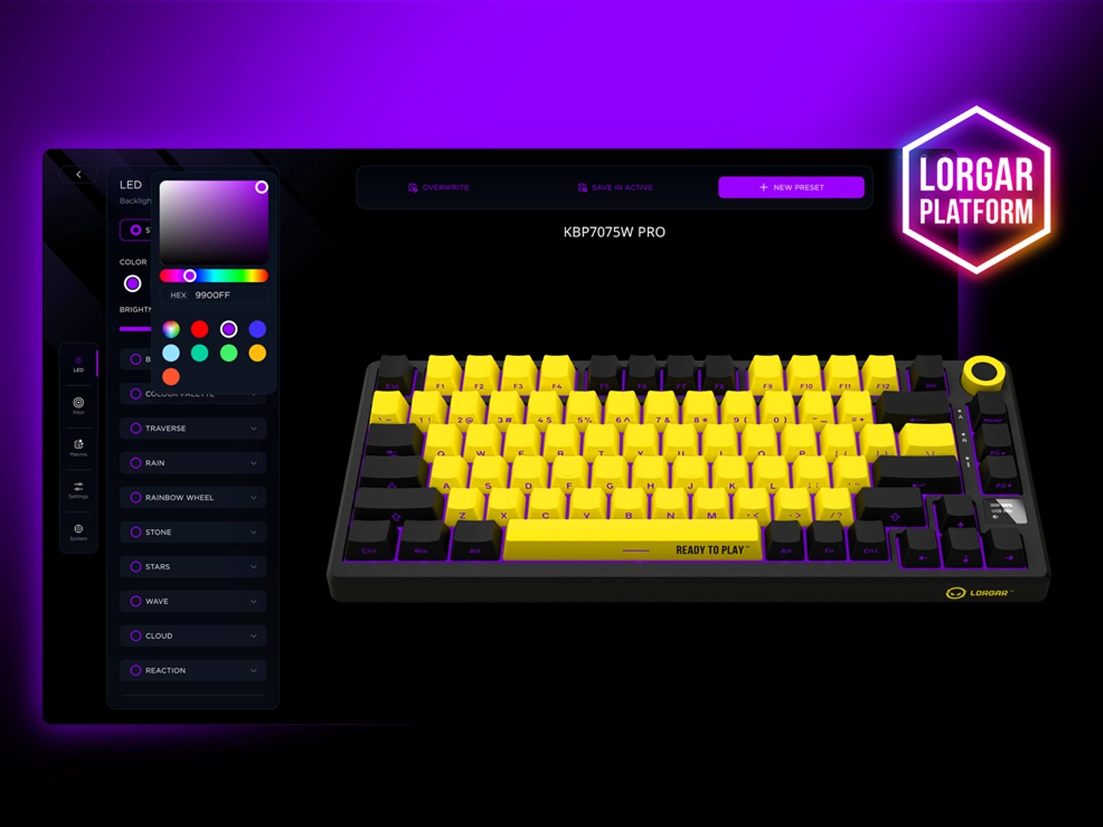 Наслаждайся яркой RGB-подсветкой с 16.8 миллионами цветовых вариантов. Настраивай эффекты подсветки под себя и синхронизируй с другими устройствами LORGAR™ через платформу LORGAR.