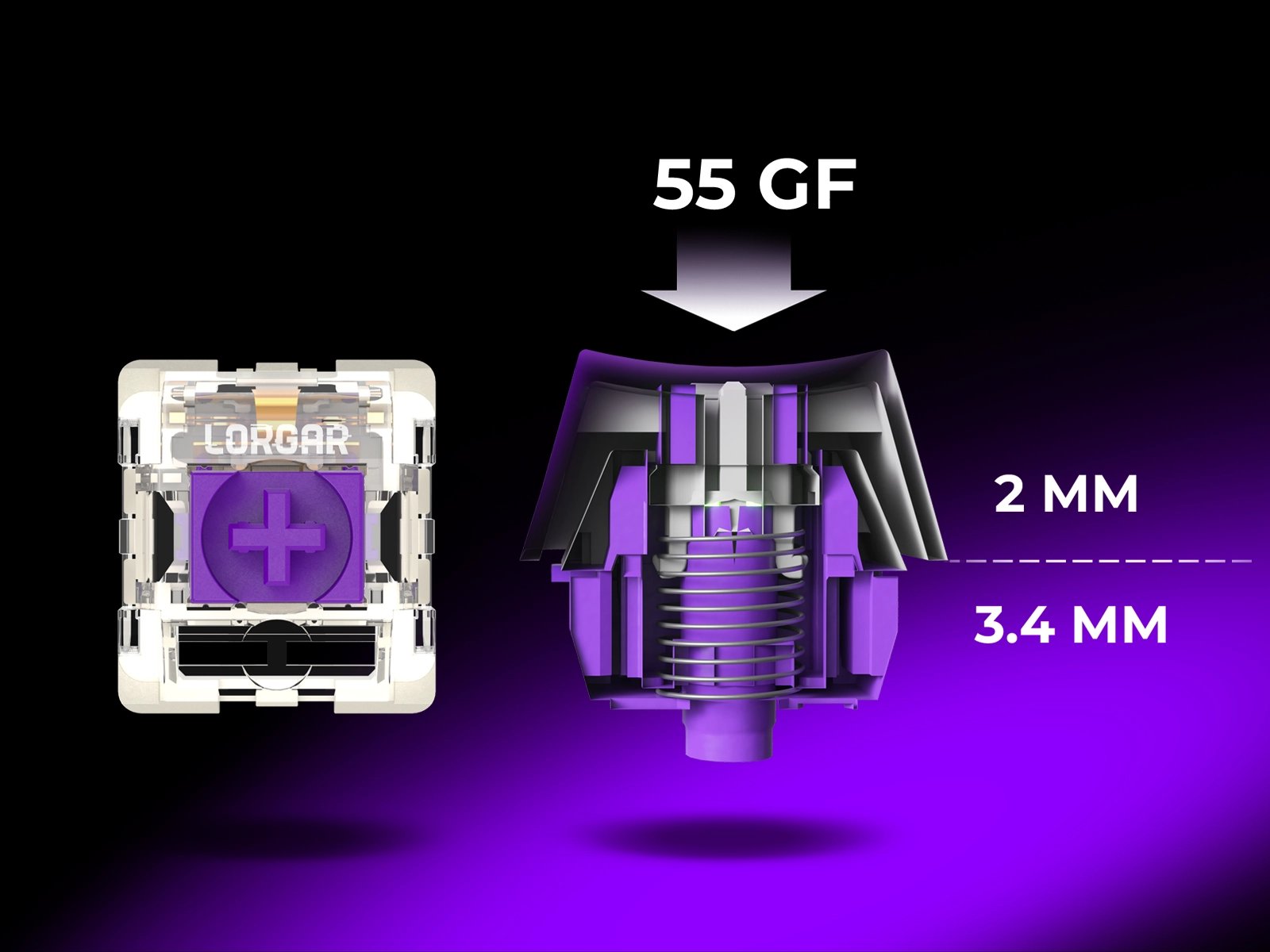 Ощути премиальное механическое качество с бесшумными, заранее смазанными линейными переключателями LORGAR™ «Toxic Purple». Созданные для геймеров, они обеспечивают плавное, стабильное нажатие с идеально сбалансированной силой срабатывания в 55 г. Ресурс в 50 миллионов нажатий гарантирует надёжность даже при самых жарких игровых сессиях — на годы вперёд.