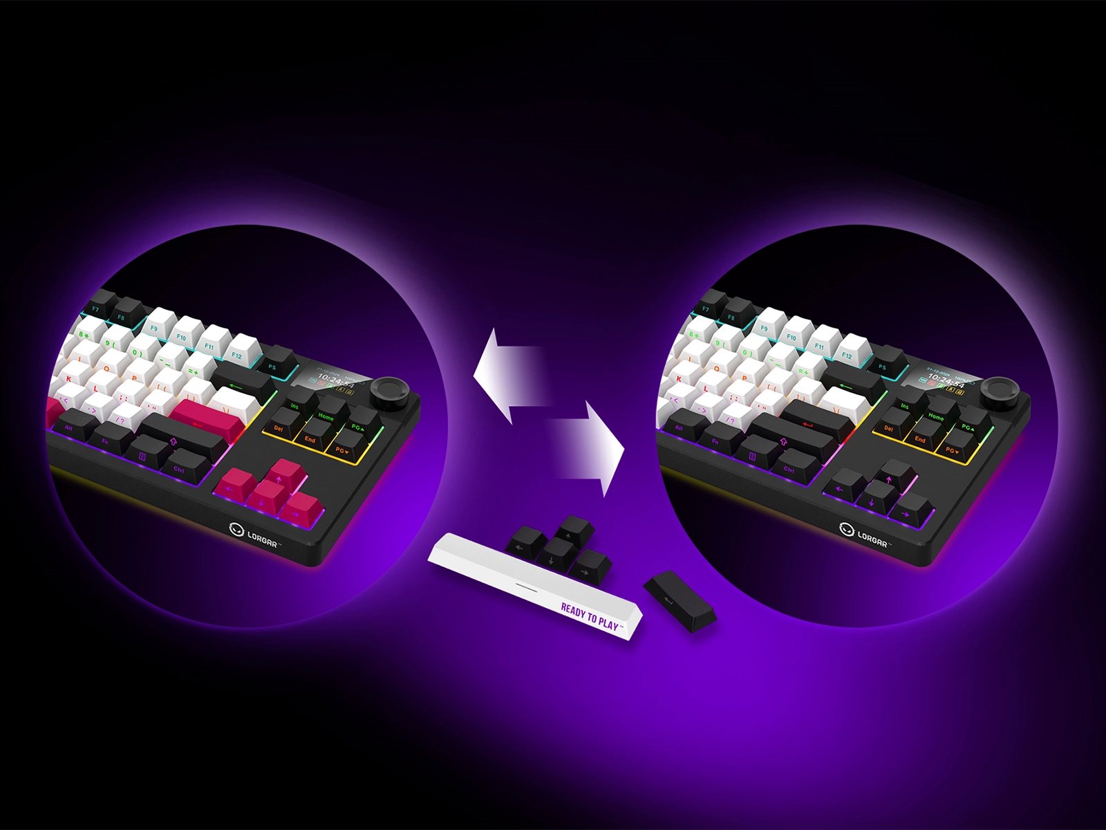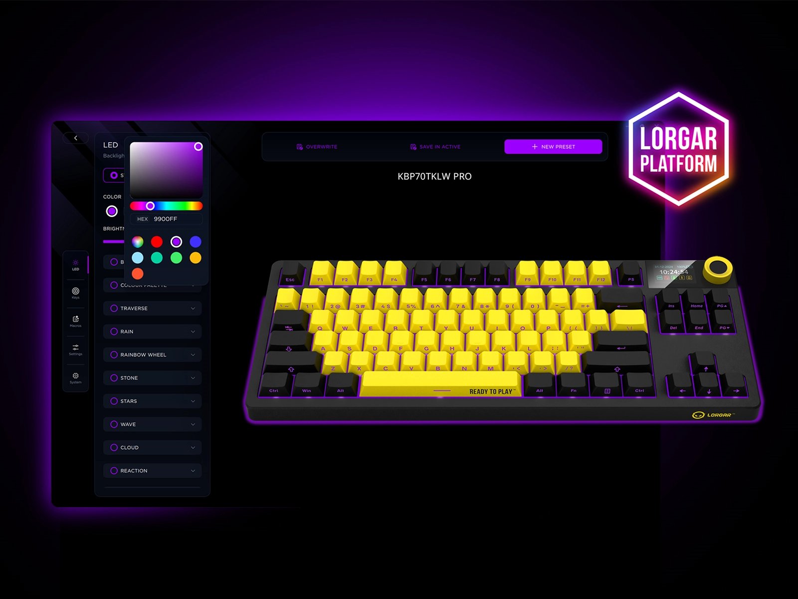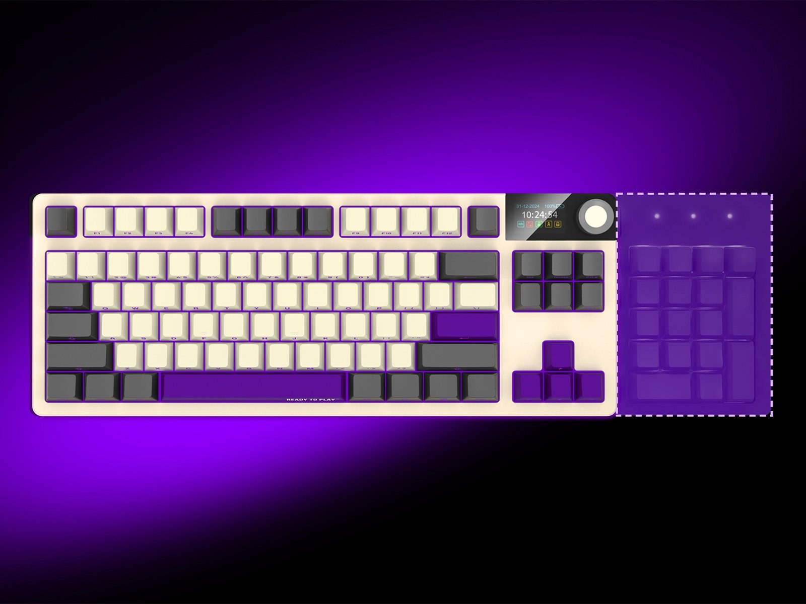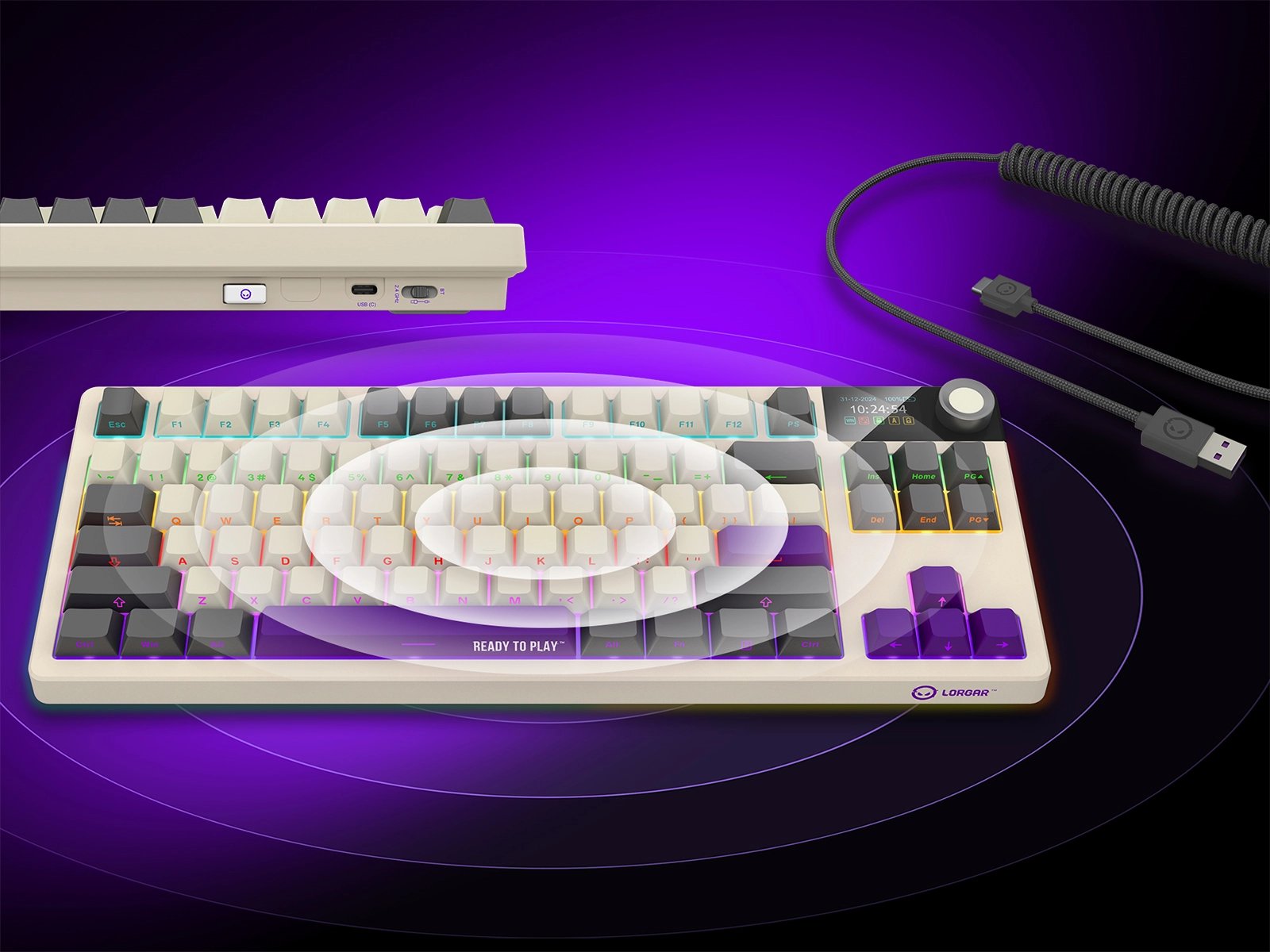 АДАПТИВНЫЙ RGB-ДИСПЛЕЙ И МУЛЬТИМЕДИЙНЫЙ СМАРТ-РЕГУЛЯТОР ВЫВОДЯТ БЕСПРОВОДНУЮ МЕХАНИЧЕСКУЮ ИГРОВУЮ КЛАВИАТУРУ PRO KBP70TKLW ЗА ПРЕДЕЛЫ ОБЫЧНОГО.