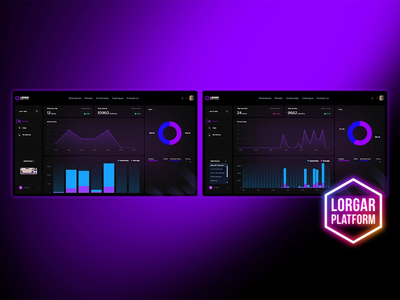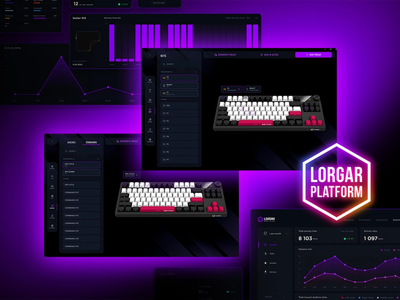 Отслеживай свои игровые сессии с помощью аналитической панели LORGAR PLATFORM. Следи за интенсивностью игр в течение дня и изучай подробную статистику использования клавиатуры. Получай данные, которые помогут улучшить результаты и оптимизировать настройку под себя.