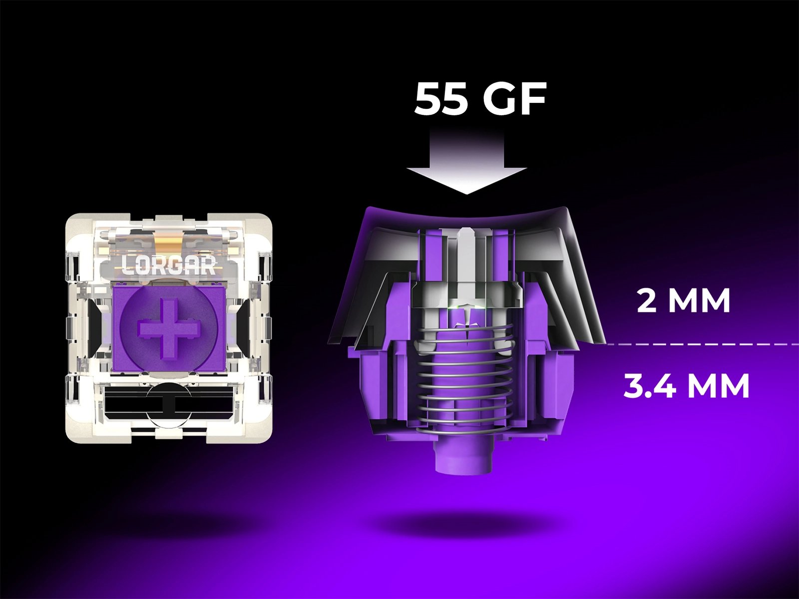 Ощути премиальное механическое качество с фирменными линейными переключателями LORGAR™ «Toxic Purple». Эти бесшумные и заранее смазанные свитчи созданы для побед: плавный, стабильный ход с идеально сбалансированным усилием срабатывания в 55 gf. Расчитаны на 50 миллионов нажатий — надежность, которая выдержит годы интенсивного гейминга.