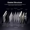 Конструкция с gasket-креплением и пятью слоями шумопоглощения обеспечивает приятный глухой «кремовый» звук и мягкое, упругое ощущение при наборе текста.