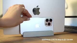 Подставка имеет три слота ширину которых можно отрегулировать, что позволяет разместить на ней ноутбук, планшет и телефон одновременно. Это очень удобно, если вы имеете несколько устройств и хотите сэкономить рабочее место на столе.