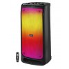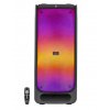 TWS - одновременное подключение двух систем к одному источнику аудиосигнала AUX подключение для использования с ПК, ТВ и другими источниками Регулировка уровня высоких и низких частот Два микрофонных входа с функцией эхо Увеличенное время работы Пульт дистанционного управления Подсвечивается динамическим RGB-световым массивом с 5 режимами эффектов Литий-ионный аккумулятор 88,8 Вт*ч (8000 мА*ч, 11,1 В)