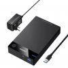 - Подключается к ПК или ноутбуку с помощью интерфейса USB 3.0 со скоростью передачи данных до 5 Гбит/сек. Такого запаса скорости хватит как для подключения классических жестких дисков, так и для твердотельных накопителей.
