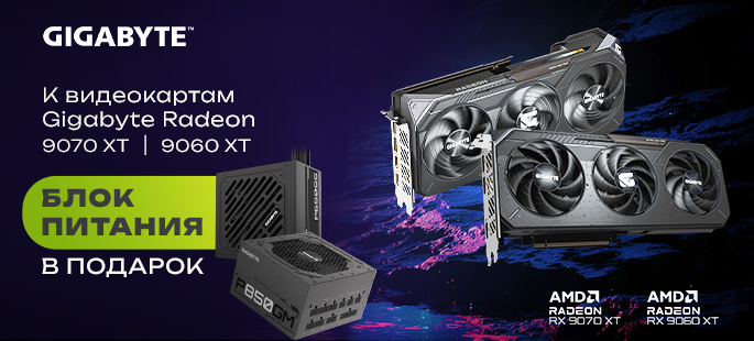 - Видеокарта Gigabyte Radeon RX 9070 XT GAMING OC 16384MB (GV-R9070XTGAMING OC-16GD) - блок питания Gigabyte P850GM 850W в подарок