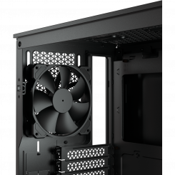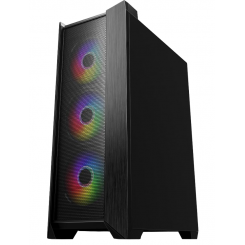 На шасси корпуса производитель разместил 3 фирменніх 9-лопастных вентилятора диаметром 120 мм (2 – спереди, 1 – сзади). RGB-подсветку имеют только 2 передних кулера. Также на передней части корпуса можно разместить любой из вариантов на выбор: