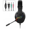 Розмір мікрофона: 6 x 5 мм Насичені баси та чисті високі частоти Триколірне статичне підсвічування для стильного геймерського вигляду М'які амбушури з екошкіри для комфортного використання Регулювання гучності на кабелі Універсальна сумісність з ПК, ноутбуками та консолями