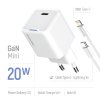 Аналоги Мережевий зарядний пристрій ColorWay GaN Mini USB Type-C 20W + Cable Lightning (CW-CHS059PDL-WT) White