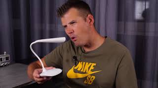 Сенсорна кнопка для безшумного ввімкнення й регулювання яскравості. Встановлення мінімальної яскравості дає можливість використовувати лампу як нічник. 14 світлодіодів забезпечують рівномірне розсіювання світла без відблисків і без стробоскопічного освітлення.