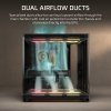 Просторий внутрішній простір спеціально розроблений для найпотужніших відеокарт. Два повітряні канали спрямовують прохолодне повітря безпосередньо до GPU, забезпечуючи стабільну роботу та максимальну продуктивність.