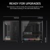 Попередньо встановлені 120-мм вентилятори iCUE LINK LX-R RGB з реверсивним ротором у нижній частині корпусу забезпечують ефективне та тихе охолодження з яскравим RGB-підсвічуванням. У комплекті є System Hub, який підтримує до 24 пристроїв iCUE LINK, що дозволяє легко підключати додаткові вентилятори лише одним кабелем.
