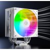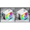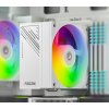 - Дизайн та практичність: Біле виконання кулера з ARGB-підсвічуванням додає естетики системі, особливо у корпусах зі світлим оформленням. Компактні розміри (128x76x152 мм) дозволяють легко інтегрувати його в більшість корпусів, а тихий вентилятор робить роботу системи комфортною.