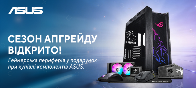 Купуйте акційні блоки живлення, системи рідинного охолодження та корпуси ASUS у магазині telemart та отримуйте геймерську периферію у подарунок.*