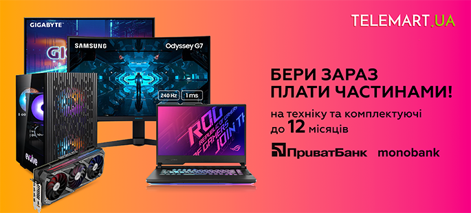 Купуйте акційну техніку та комплектуючі в магазині TELEMART.UA в "Оплату частинами" від Monobank та ПриватБанк до 12 місяців.