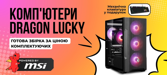 Купуйте акційні комп’ютери Dragon Lucky в магазині TELEMART.UA та отримуйте клавіатуру MSI FORGE GK310 Mechanical Red Switches Black у подарунок.*