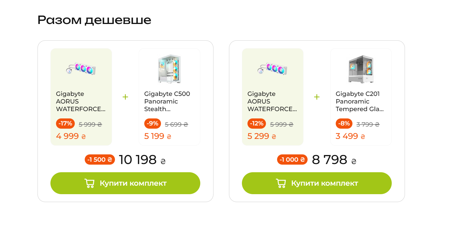 Вместе дешевле! При покупке акционного комбо из корпуса и охлаждения Gigabyte выгода до 1500 грн